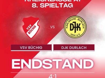 Kreisklasse A1 / 8.Spieltag: VSV Büchig – DJK Durlach 4:1 (0:0) 06 Okt. 2025vorstand Am 8. Spieltag stellte sich die DJK Durlach im Büchiger Sportpark vor. Der Aufsteiger kam als Vorletzter und mit nur einem Punkt... Read More0