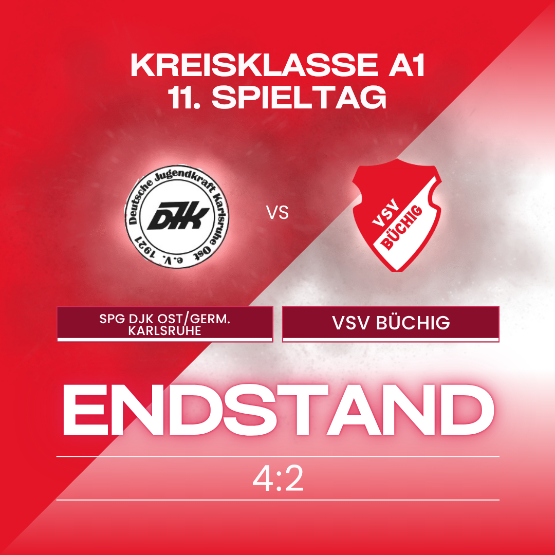 Kreisklasse A1 / 11.Spieltag: SpG DJK Ost/Germ. Karlsruhe – VSV Büchig 4:2 (1:1)
