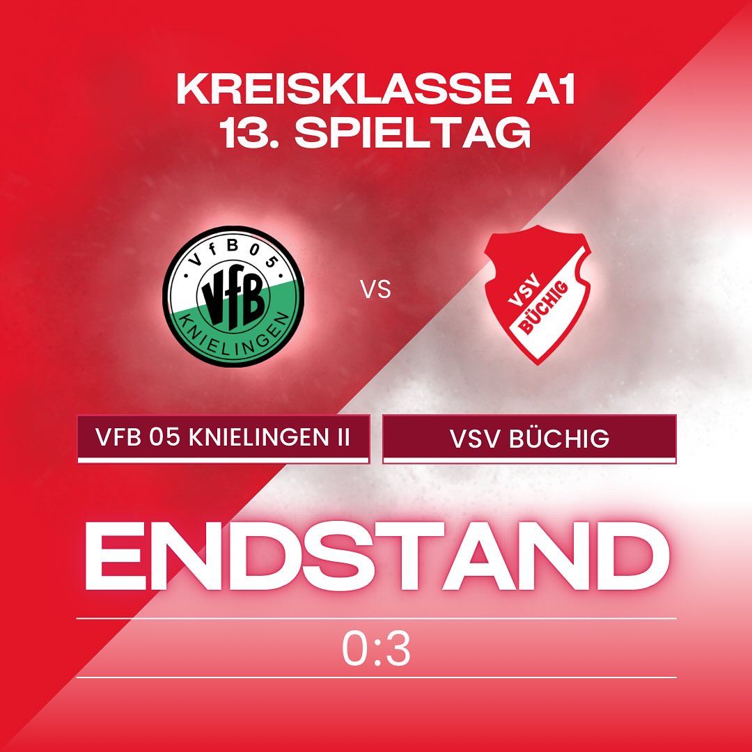 Am 13. Spieltag war der VSV Büchig beim VfB 05 Knielingen 2 zu Gast. Die Knielinger erweisen sich in den vergangenen Jahren stets als unangenehmer Gegner – ein Pflichtspielsieg sprang gegen die Grün-Weißen in den bisherigen sechs Begegnungen nämlich noch nie für den VSV heraus. Von Beginn an übernahmen die Büchiger das Kommando und ließen den Ball durch die eigenen Reihen laufen – Torchancen waren in der Anfangsphase aber zunächst Mangelware. Auch wenn der VSV das Spiel kontrollierte, war es ein Konter, der für die erste Großchance sorgte: Nach einem Knielinger Eckball schickte M.Kanoukov seinen Bruder V.Kanoukov auf die Reise, der von der Mittellinie alleine auf Torhüter Bier marschierte. Beim Versuch diesen zu umkurven, konnte Bier den Ball leicht erwischen und ein Abwehrspieler klärte die Situation. Kurz danach versuchte es Hadeler mit einem klugen Lupfer über Bier, auf der Linie klärte aber erneut ein VfB-Abwehrspieler per Kopf und verhinderte damit das sichere 1:0. In der Entstehung etwas glücklich, aber verdient, fiel der Führungstreffer in der 20. Minute: Ein eigentlich harmloser Schuss aus 18 Metern von V.Kanoukov wurde geistesgegenwärtig von Müller unhaltbar ins Tor abgefälscht. Der VSV blieb auch nach der Führung am Drücker, die Gastgeber kamen ihrerseits über vielversprechende Ansätze nicht hinaus. Bei den Knielinger Angriffen fehlte die Genauigkeit. Ganz genau machte es hingegen M.Kanoukov in der 40.Minute: Beim Pressing am Knielinger Strafraum eroberte V.Kanoukov den Ball, verlor ihn allerdings sofort wieder. Der Klärungsversuch des Knielingers landete aber beim VSV-Stürmer. Dieser ließ sich nicht lange bitten und schlenzte den Ball überlegt ins lange Eck. Mit der komfortablen Führung ging es in die Pause.