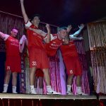 Hläfte zwei wurde mit einer sagenhaften Gruppen-Choreografie zu „Footlose“ eröffnet, gefolgt von einem tollen Medley der Jacky Boys (Bernd Schilling, Dominik Quittkat). Der VSV-Spielausschuss (Wolfgang Frick, Bernd Schilling und Harald Kraus) präsentierte seine Interpretation von Udo Jürgen’s „Griechischer Wein“ – „Büchiger Wein.“ Vater Abraham und Otto Walkes sorgten gemeinsam mit den Schlümpfen für ordentlich Lacher und das „VSV-Männerballett (Daniel Dreyer, Sven Kitter, Kevin Pfattheicher, Florian Pfitsch, Kevin Margrander) zeigte ein unvergessliches Medley von Britney Spears, Snoop Dog, Shakira und den Abbrunzati Boys.