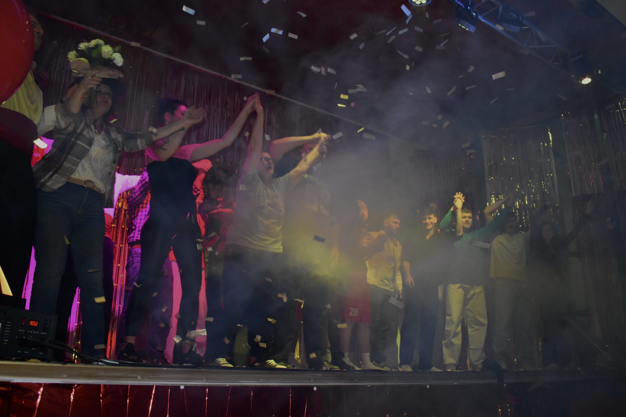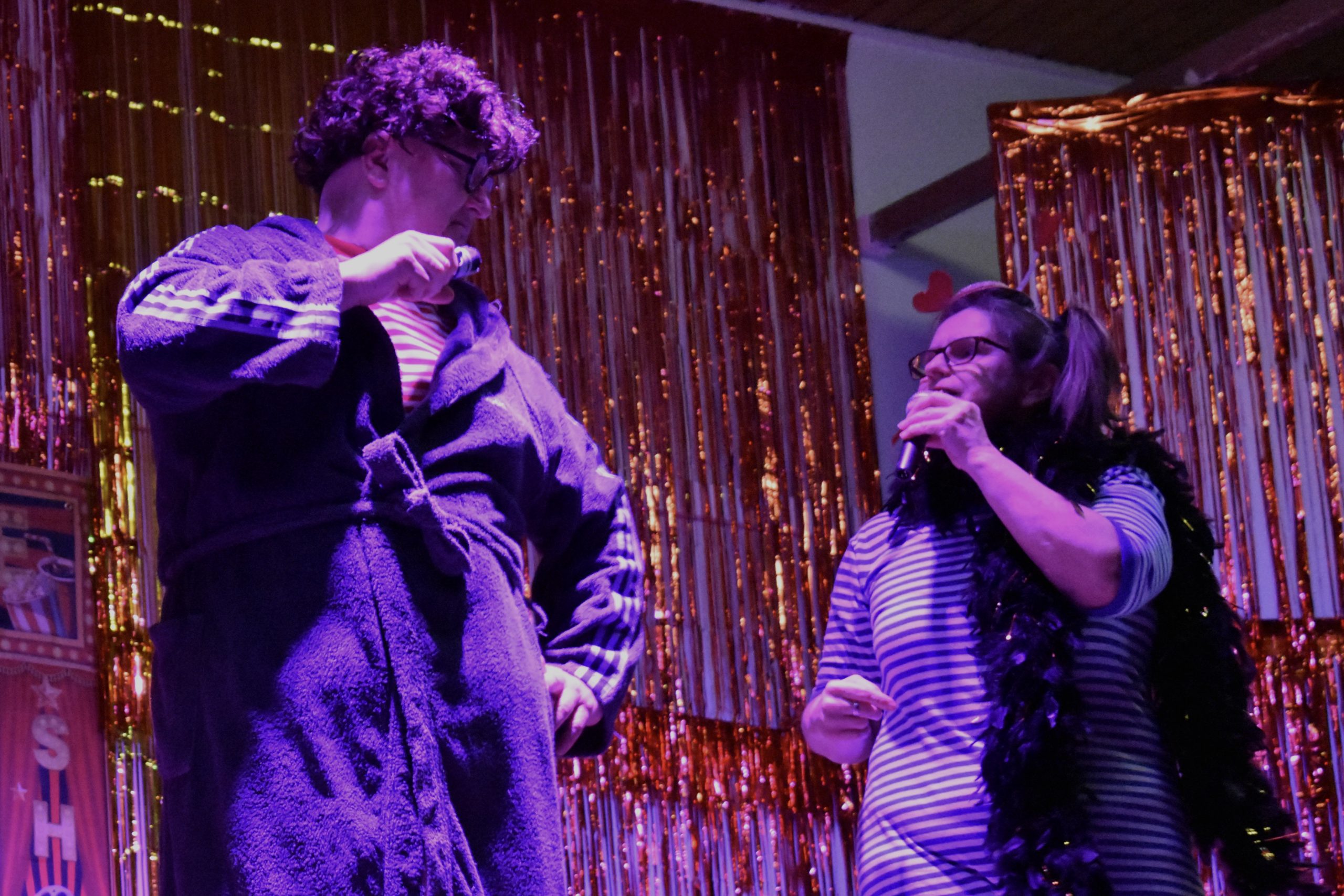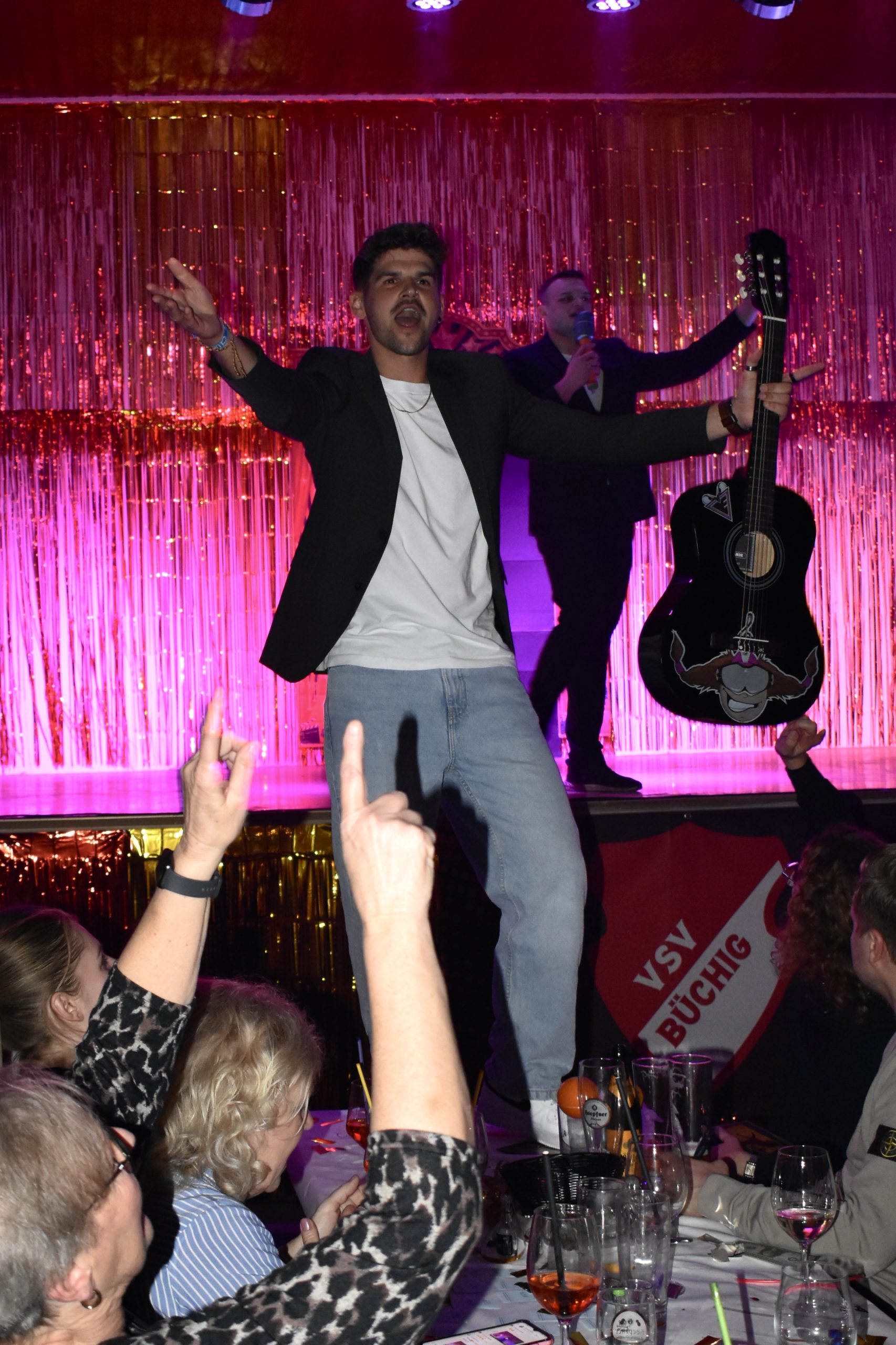 Auch diesmal führte der 2.Vorstand Carsten Kitter als Moderator durch den Abend, der unter dem Motto „Showtime VSV“ stand. Die erste Überraschung des Abends gab es gleich beim ersten Auftritt: Vorstand Thomas Frank rockte (endlich) als Wolfgang Petry die Bühne und im Anschluss gaben Dieter Hallervorden und Helga Feddersen (Olli und Heike Bolz) ihren Klassiker „Die Wanne ist voll“ zum Besten, die Biercowboys (Robin Beck, Maxi Kraus, Julian Böhm und Diana Thome) tanzten zu Beyoncé’s „Texas Hold ‚Em“ und die Backstreet Boys (Maike Pfattheicher, Alina Thome, Nora Pfattheicher, Lilli Kemper, Miriam Barthel) rockten die Bühne. Nach dem Auftritt der VSV-Allstars (Dominik Bichelhuber, Ralf Barthel, Marco Nagel, Albert Haziri) und ihren Geschichten aus dem Paulaner-Garten gab es auch in diesem Jahr wieder Live-Gesang von Karl aus Karlsruhe (Karl Wörner), der diesmal „Shut up and Dance“ und „Iris“ performte.