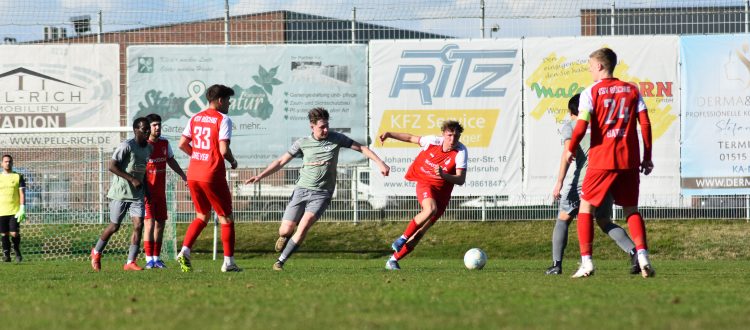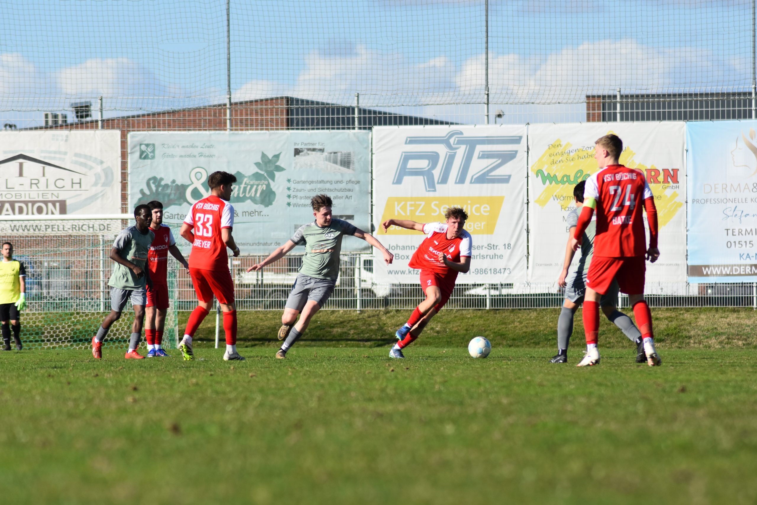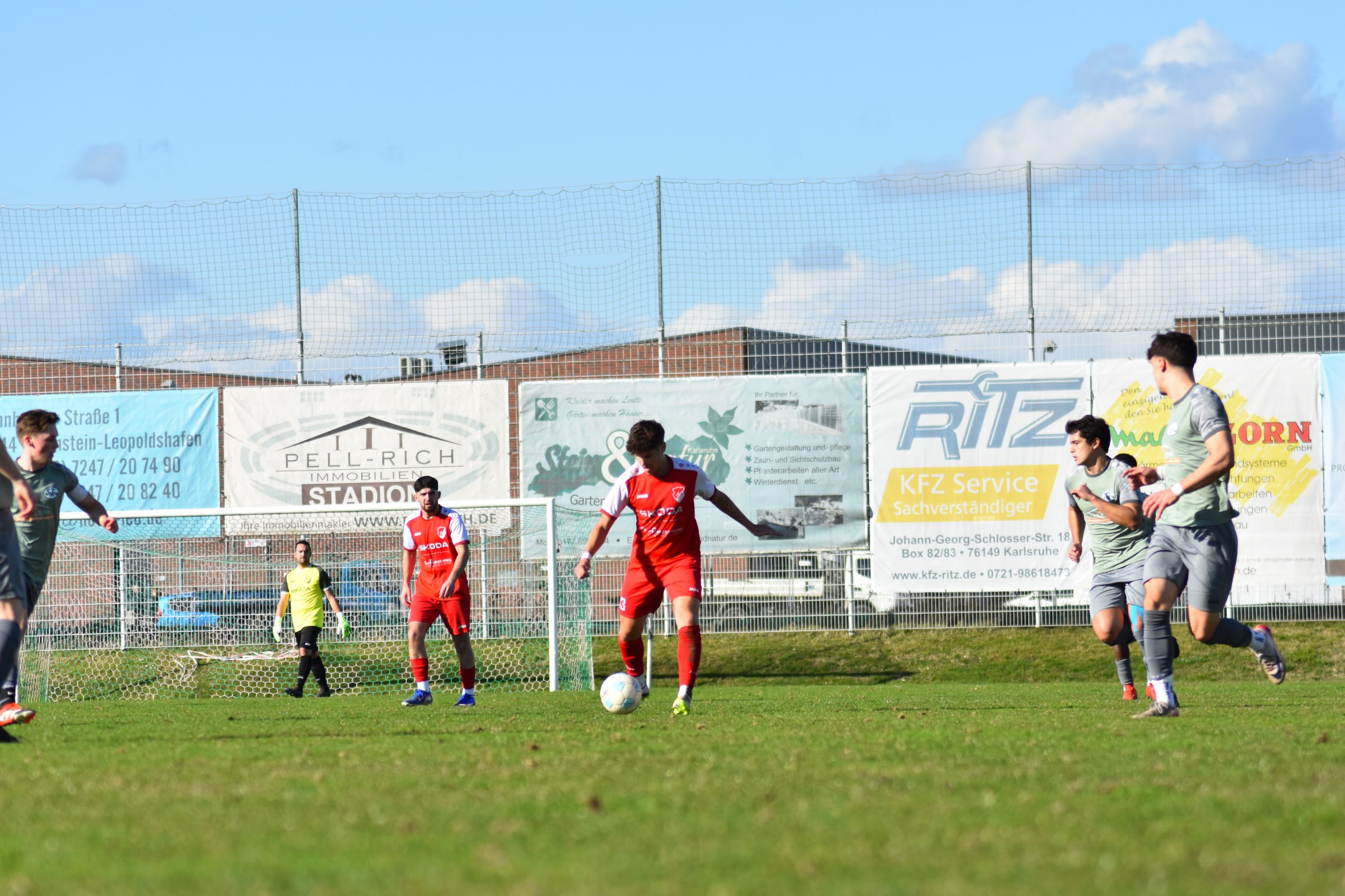 Zum ersten Pflichtspiel 2026 war der VSV Büchig in der Abraham-Lincoln-Allee beim FV Fortuna Kirchfeld 2 zu Gast. Die Rollenverteilung war klar: Die abstiegsbedrohten Gastgeber wollten mit einem Punktgewinn Boden im Keller gutmachen, der VSV seinerseits Anschluss an die Spitze der Liga halten. Die Pfattheicher-Elf verzeichnete von Beginn an zwar mehr Ballbesitz, tat sich aber enorm schwer ein geordnetes Passspiel aufzuziehen – geschweige denn gute Torchancen herauszuspielen. Die Fortuna reagierte etwas abwartend, war in den Zweikämpfen sehr giftig und kämpfte um jeden Meter. Torraumszenen waren Mangelware. Erst als sich Moysich nach einer Einzelaktion durchsetzen konnte und sein Querpass wenige Meter vor dem Tor auf den einschussbereiten M.Kanoukov im letzten Moment geblockt wurde, tat sich erstmals etwas vor einem der beiden Tore. M.Kanoukov hatte nur kurz danach die größte Chance der ersten Halbzeit: Nach einem langen Ball nutzte er ein Missverständnis zweier Kirchfelder Verteidiger und lief allein Richtung Tor. Der harmlose Abschluss im 1 vs. 1-Duell mit Katzenmeier war aber kein Problem für den Keeper. Auf der Gegenseite war die Kirchfelder Offensive nur einmal nennenswert gefährlich: Ein Angreifer tauchte alleine vor Kitter auf und lupfte den Ball ins Tor. Der Schiedsrichter entschied aber zurecht auf Abseits. Mit einem 0:0 ging es in die Kabine.
