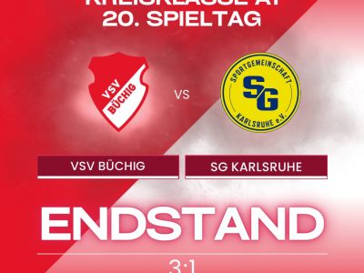 Kreisklasse A1 / 20.Spieltag: VSV Büchig – SG Karlsruhe 3:1 (2:0) 22 März 2026vorstand Tore: 1:0 M.Kanoukov (4.), 2:0 Beck (16.), 3:0 Dreyer (56.), 3:1 Gausmann (90. / FE) VSV: Kitter, Böhm, Kraus, Beck (81. Schütz),... Read More0