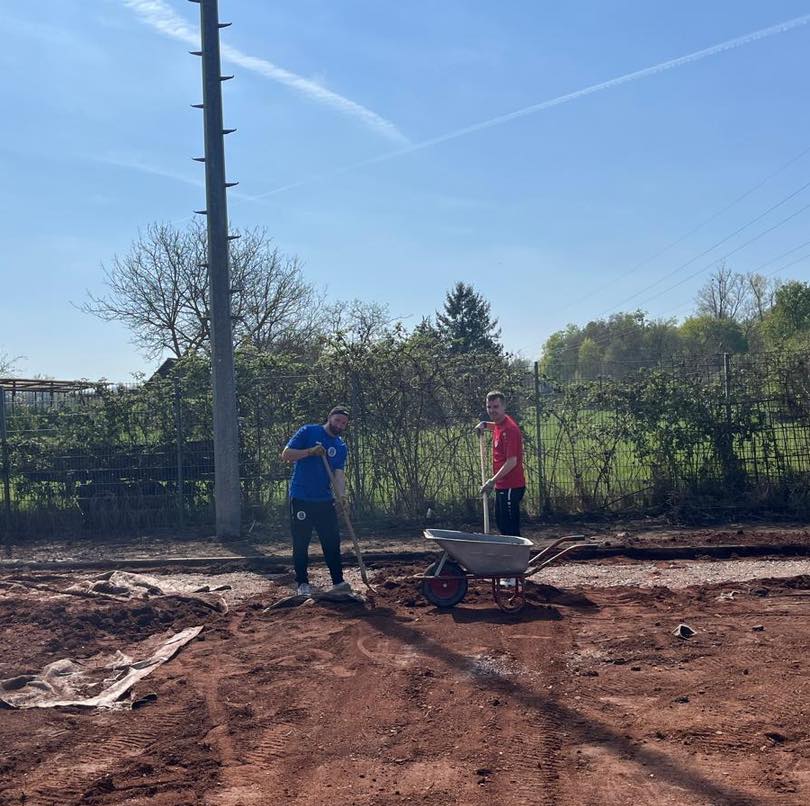 Bei Arbeitseinsatz 2 wurde heute mit dem Abtragen der Grasschicht und des Ricoten-Belags begonnen.