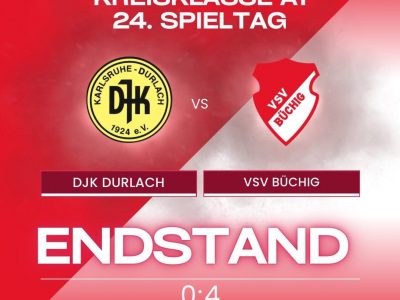 Kreisklasse A1 / 24.Spieltag: DJK Durlach – VSV Büchig 0:4 (0:2) 19 Apr. 2026vorstand Tore: 0:1 Batke (14./FE), 0:2 Joram (33.), 0:3 Joram (61.), 0:4 V.Kanoukov (77.) VSV: Israel, Böhm, Beck, Müller (19. Kraus), Batke, Dreyer,... Read More0