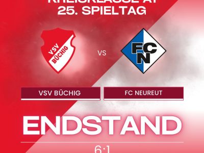 Kreisklasse A1 / 25.Spieltag: VSV Büchig – FC 08 Neureut 6:1 (2:1) 26 Apr. 2026vorstand Tore: 0:1 Willimsky (13.), 1:1 Kraus (31.), 2:1 M.Kanoukov (35.), 3:1 Hemberle (56.), 4:1 Hemberle (83.), 5:1 Gutberlet (88.), 6:1 Gutberlet (90.)... Read More0
